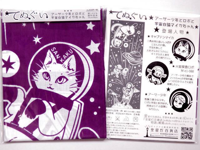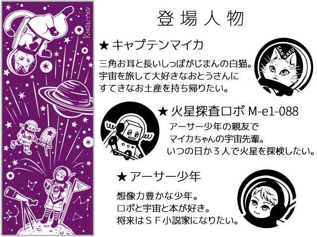 オリジナルキャラクター 宇宙を旅する白猫・マイカのてぬぐい。